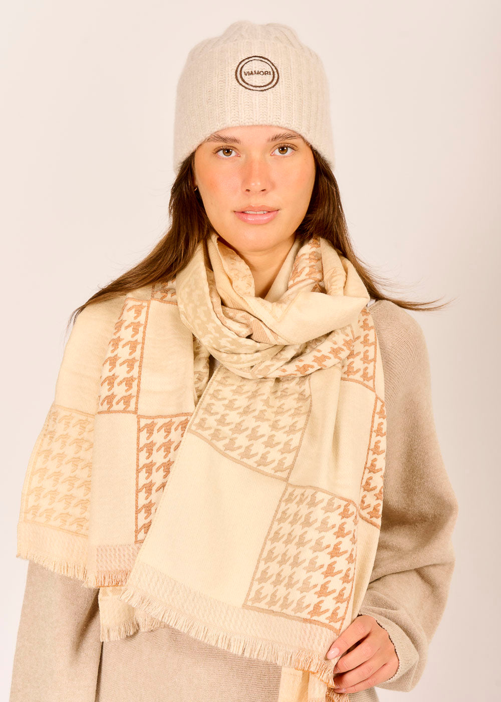 Dieses Tuch mit elegantem Hahnentritt-Muster verbindet raffinierte Patchwork-Optik mit einer besonders weichen Haptik – ein Accessoire, das jedes Outfit stilvoll ergänzt. Vielseitig kombinierbar, schenkt es dir aber vor allem Wärme an kalten Tagen.