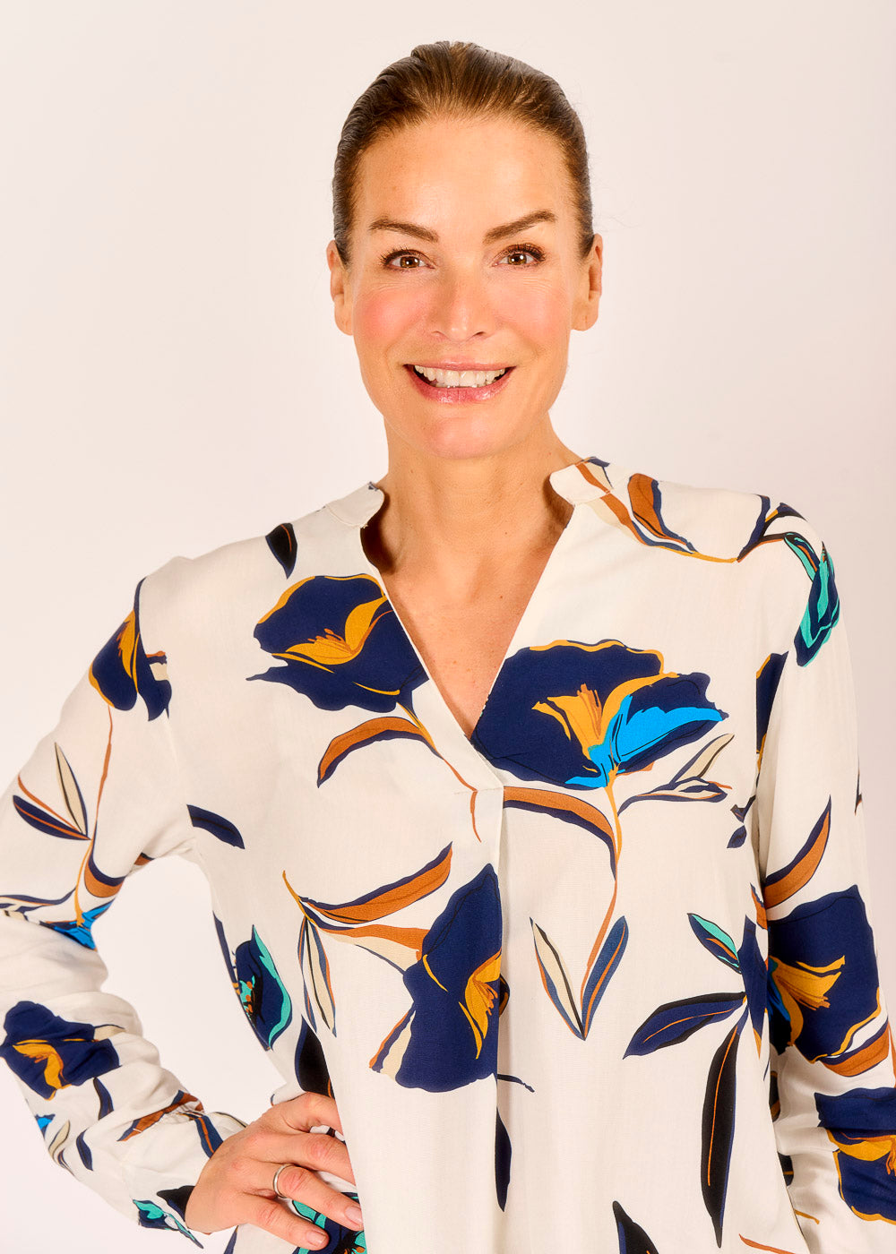 Pure Lebensfreude: Das moderne, florale Design der Tunikabluse verleiht deinem Look nicht nur Unbeschwertheit, sondern auch eine einzigartige Note. Die fließende Form sorgt für ein angenehmes Tragegefühl.