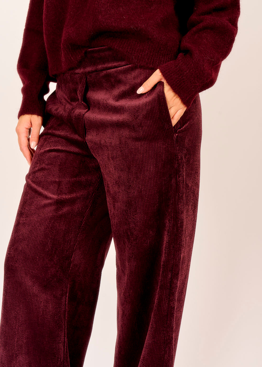 Komfort trifft Eleganz: Diese Cordhose in edlem Vino ist wie ein warmer Begleiter für deinen Alltag. Der weiche Stoff und der entspannte Schnitt sorgen für ein angenehmes Tragegefühl, das den ganzen Tag anhält. Die seitlichen Taschen setzen praktische Akzente.