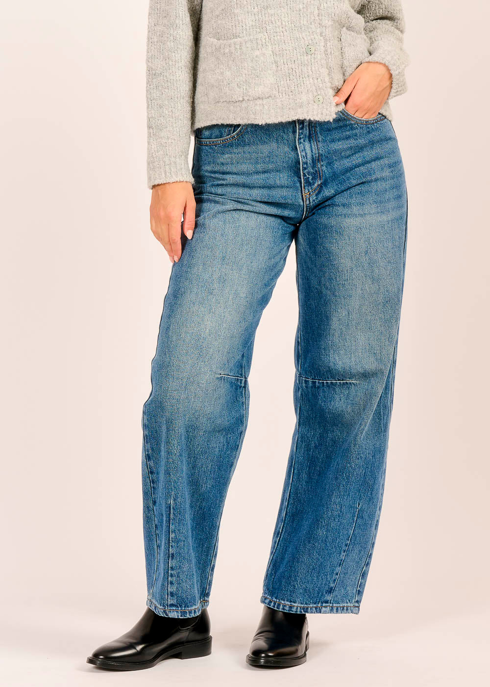 Die lässige Ballon Jeans sorgt nicht nur eine moderne Silhouette, sondern schenkt dir Bewegungsfreiheit. Der klassische Blauton lässt sich mühelos zu allen deinen Lieblingsstücken kombinieren.