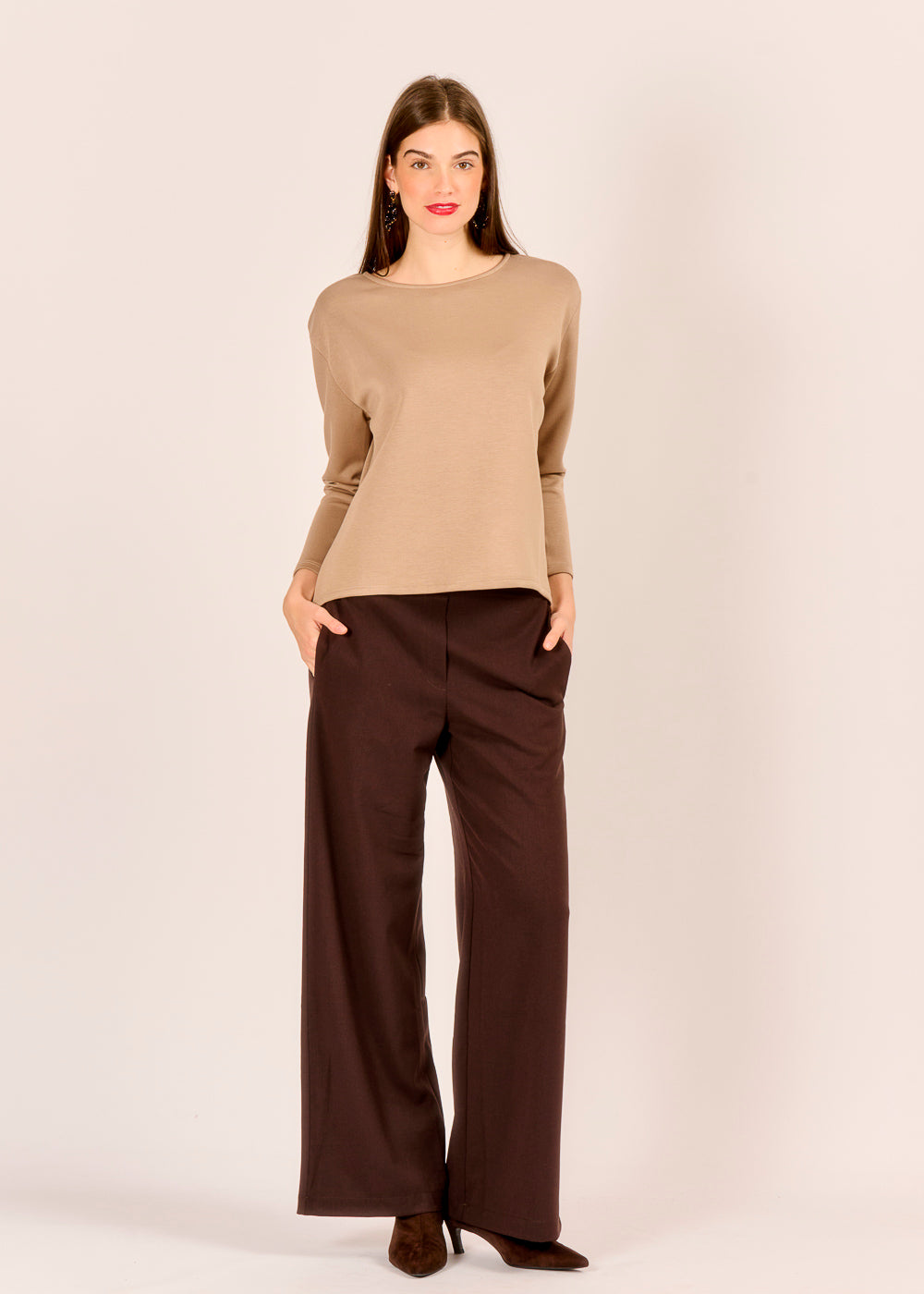 Dieses edle Shirt überzeugt mit raffiniertem Rücken und bietet eine sportliche, moderne Alternative zur klassischen Bluse. Besonders stilvoll lässt es sich mit einer edlen Pantalone für die Feiertage kombinieren – für ein bequemes Outfit, das Komfort und Eleganz mühelos vereint.