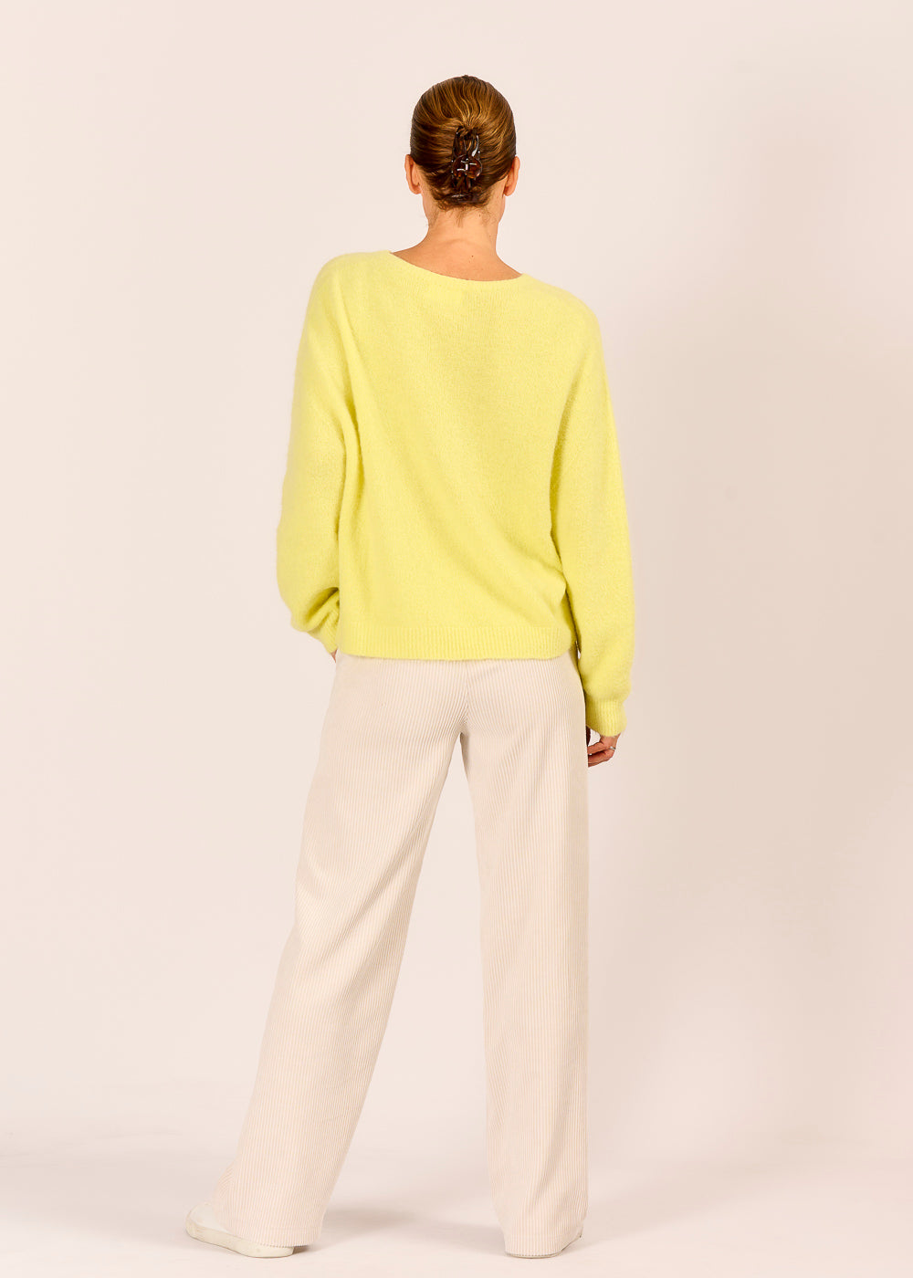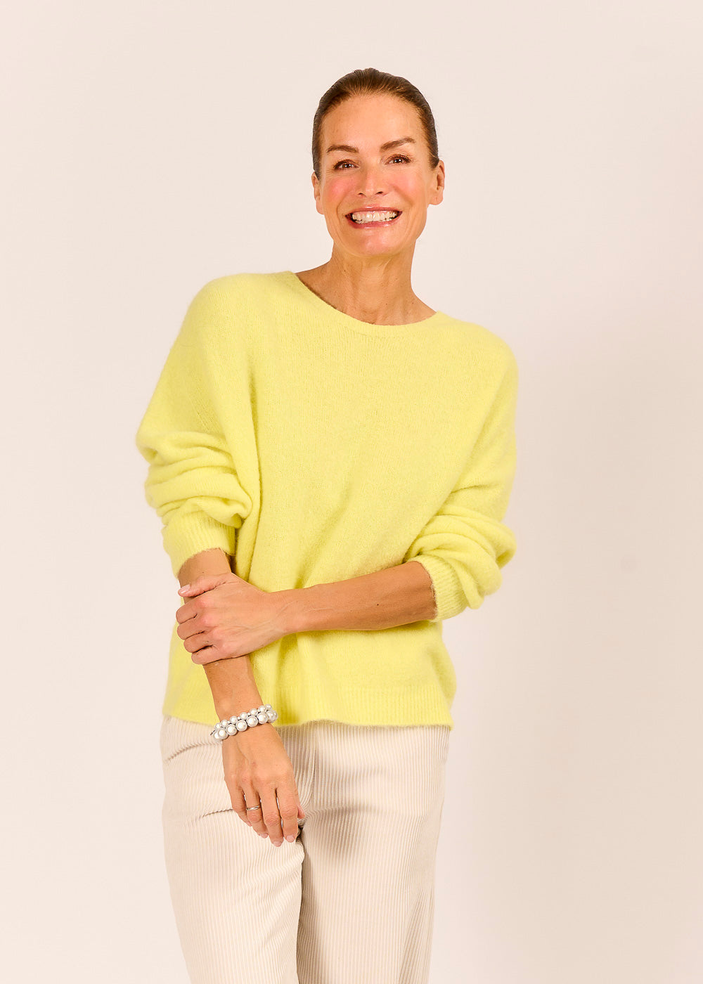 Strahlend wie die Sonne und weich wie eine Umarmung: Der Wohlfühlpullover aus Babyalpaka-Wolle in der Farbe Limone versprüht gute Laune und erinnert an die wärmere Tage. Perfekt für alle, die sich jetzt schon auf den Sommer freuen.
