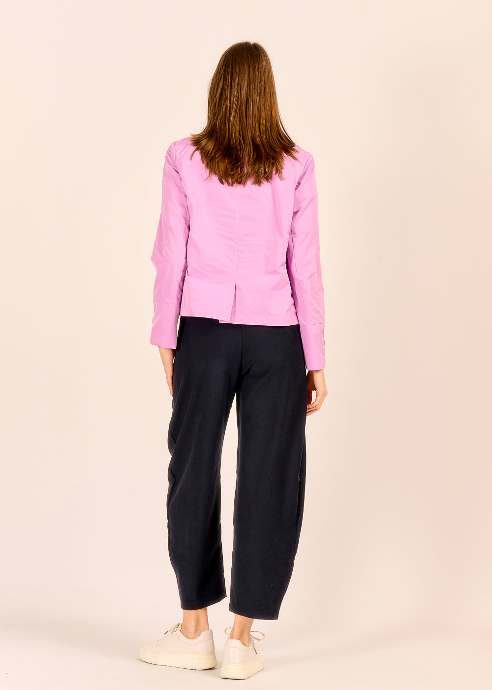 Die violette Blazerjacke mit Knöpfen setzt ein farbenfrohes Statement und sorgt für einen frischen, femininen Look. Durch raffinierte Details wirkt das Design stilvoll und lässig zugleich.
